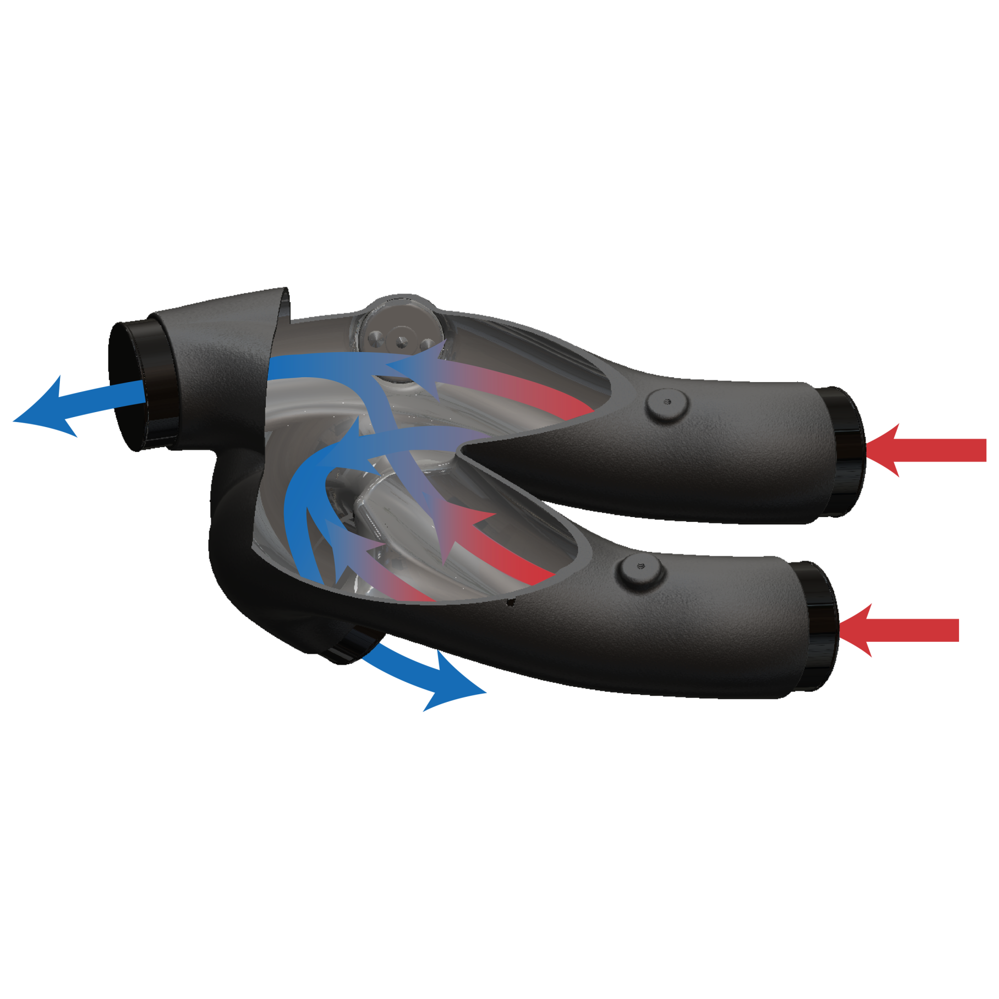 • Equal length and diameter tubes with 3.5" dual air inlets that feed more air to your turbos